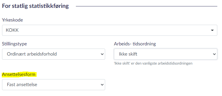 For deg så betyr dette at du må inn i regnskapssystemet og aktivt velge hvilken ansettelsesform alle dine ansatte har. Den kan være fast eller midlertidig.