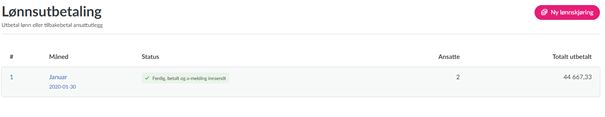 Nå er lønnskjøringen er fullført! Du har full oversikt over dine lønnskjøringer under «Lønn» > «Lønnskjøringer». Husk å betale din skatt og arbeidsgiveravgift under «Lønn» > «Skatt og AGA» når den tid kommer.