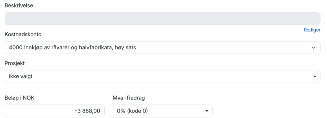 5. Legg inn beløpet for varekostnaden - den finner du på kvitteringen for varekjøpet