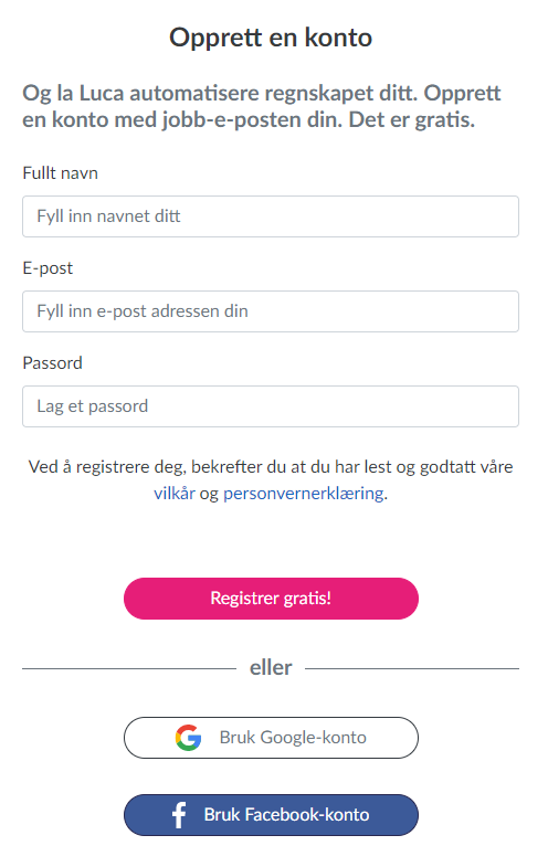 Måten du registrerer deg på blir innloggingstypen du velger fremover hver gang du skal logge deg inn.