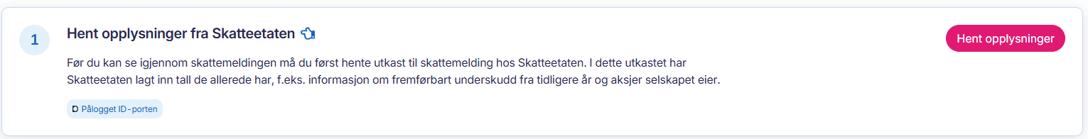 Før du kan se over og fylle inn skattemeldingen må du først hente utkastet fra Skatteetaten. I utkastet har Skatteetaten