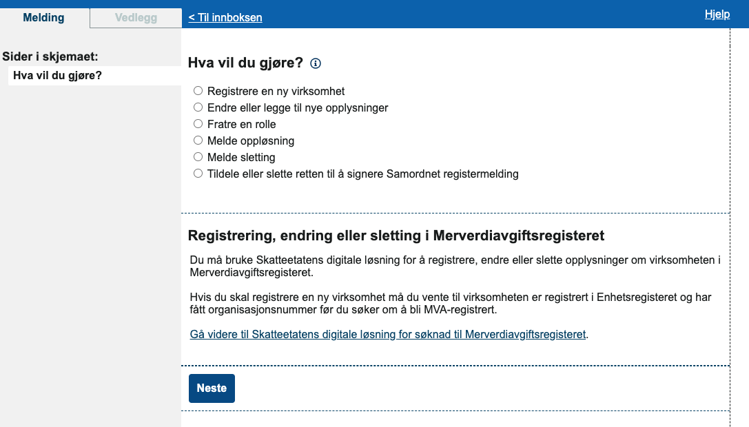 Det tar neppe mer enn 10 minutter å sende inn Samordnet registermelding. Dette er skjemaet som brukes for å starte ENK eller andre typer bedrifter og organisasjoner i Norge.