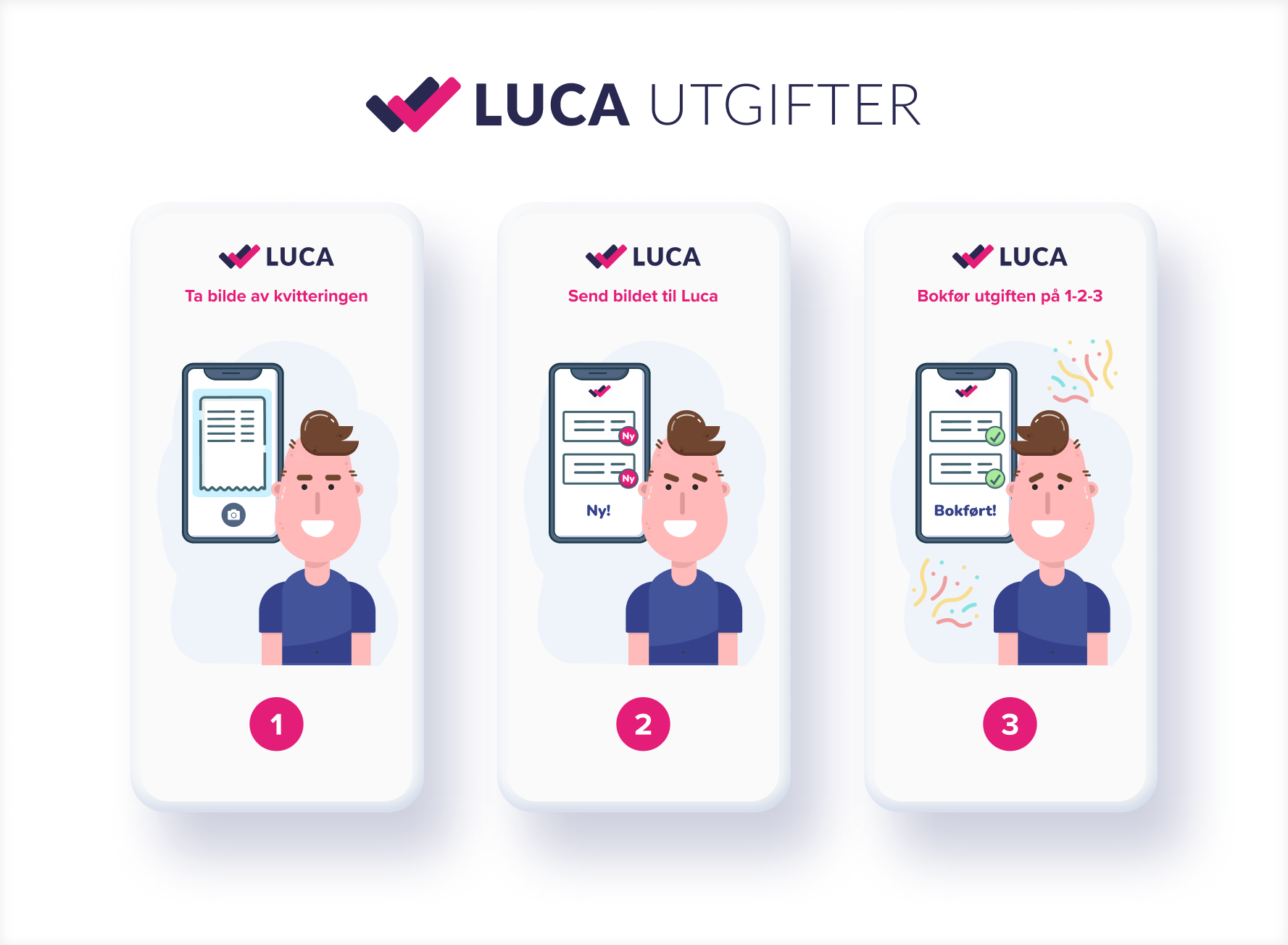 Husk at du gjør dette ikke bare for å tilfredsstille myndighetenes krav, men også for å spare penger! Enhver utgift som du bokfører i bedriften din vil redusere overskuddet ditt. Og, jo lavere overskudd du har, desto lavere blir jo skatteregningen. Har du kjøpt noe for 100 kroner, men mistet kvitteringen? Da har du tapt over 20 kroner fordi du går glipp av skattefradraget. Du skulle brukt Luca-appen!
